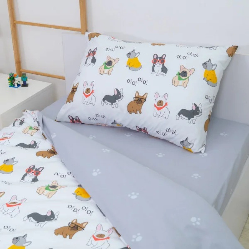Набор имеет полуторный размер и укомплектован одной наволочкой 50*70. Расцветка наволочки в наборе может быть такой как на простыне или на пододеяльнике. Расположение принта на всех составляющих комплекта может слегка разниться от того рисунка, который представлен на картинке. Это происходит из-за особенностей расположения рисунка на ткани при пошиве. Подобное несоответствие в дизайне производитель не рассматривает как брак. Обмену или возврату это изделие не подлежит.